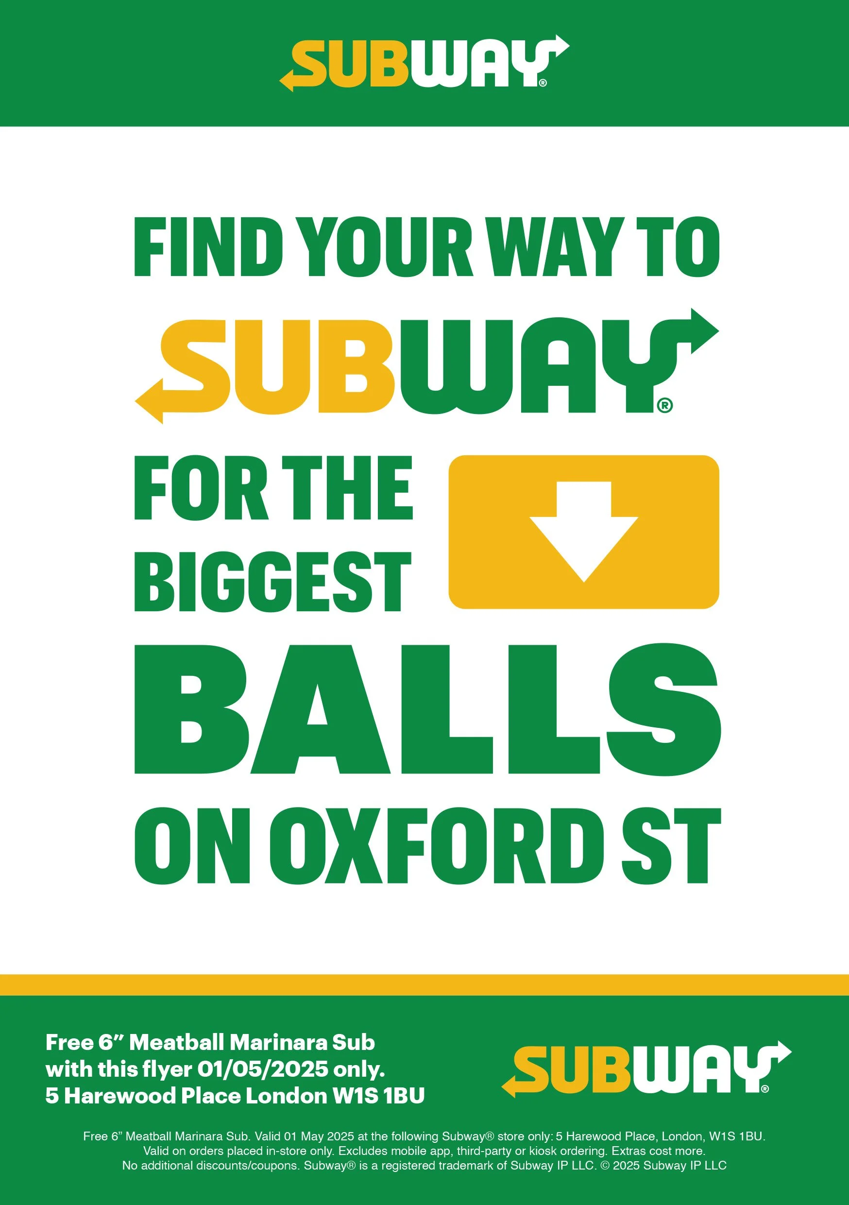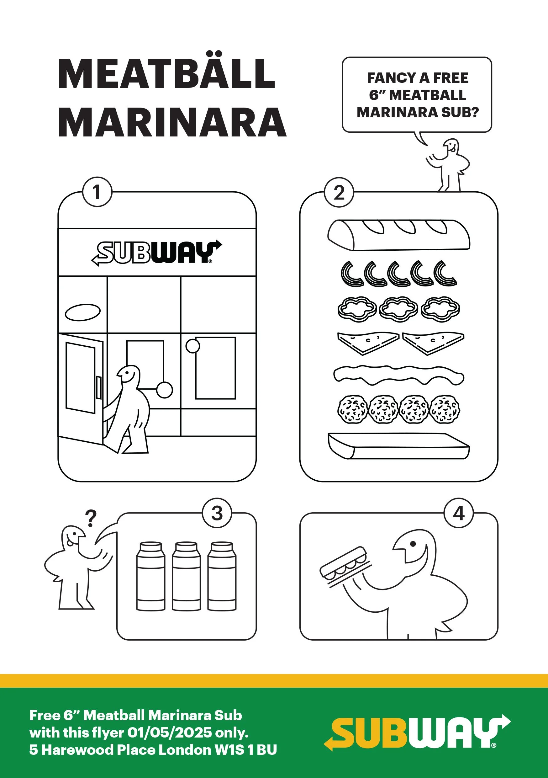 We created guerrilla-style flyers to hand out on the opening day of IKEA Oxford St, sending customers to claim a free Meatball Marinara at Subway on the same day.